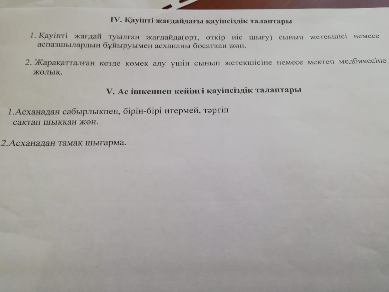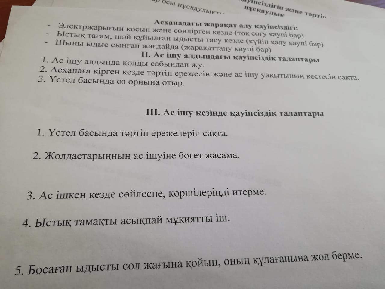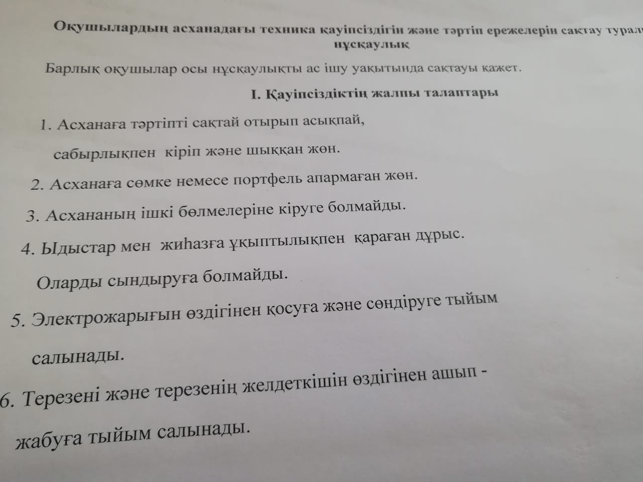 Оқушылардың асханадағы техника қауіпсіздігі және тәртіп ережелерін сақтау туралы нұсқаулық.