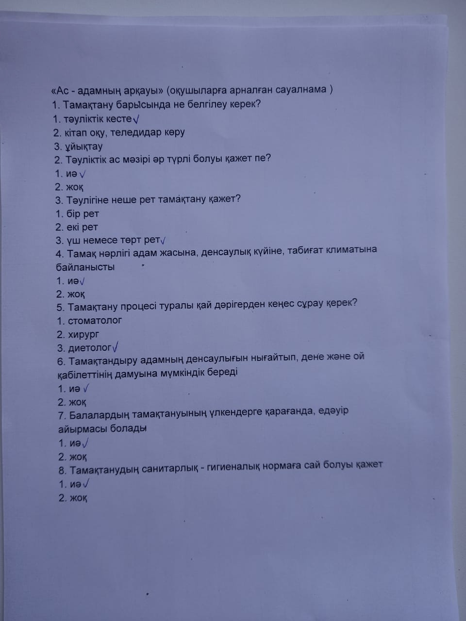 "Байғанин орта мектебі" КММ мектебінің оқушыларына ауыз судың пайдаланылуы мен дұрыс тамақтанудың сапасы т.т.с. жұмыстары мен қоса оқушылар арасында сауалнама парақтары таратылып, нәтижесі алынды. Байғанин орта мектебінің медбикесі - Дүйсенбай А.